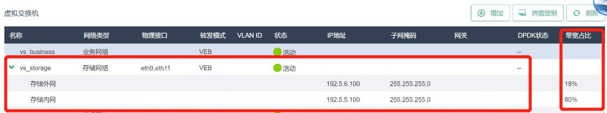 存储内网复用端口时有个带宽占比,这个比例一般是多少;图片是设备默认分配的占比