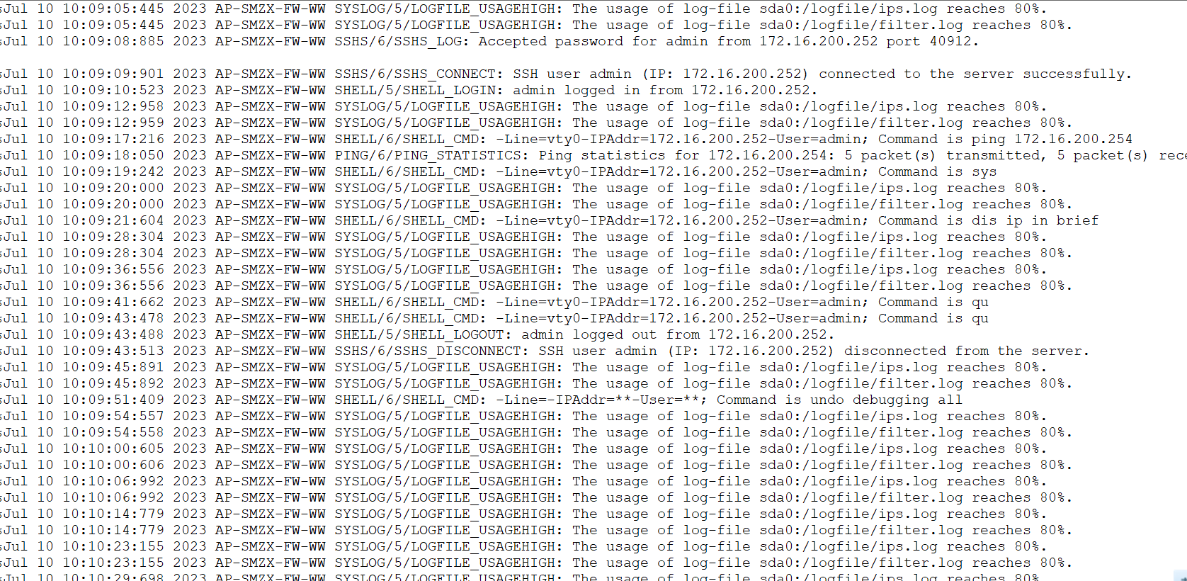 看这些日志都是登录设备的日志,和日志存储达到80% 的告警日志。没有别的