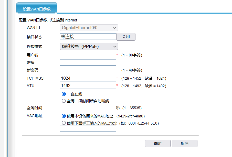 msr800路由器,更换宽带账号和密码,提示mac地址错误,不允许输入空,现在无法使用