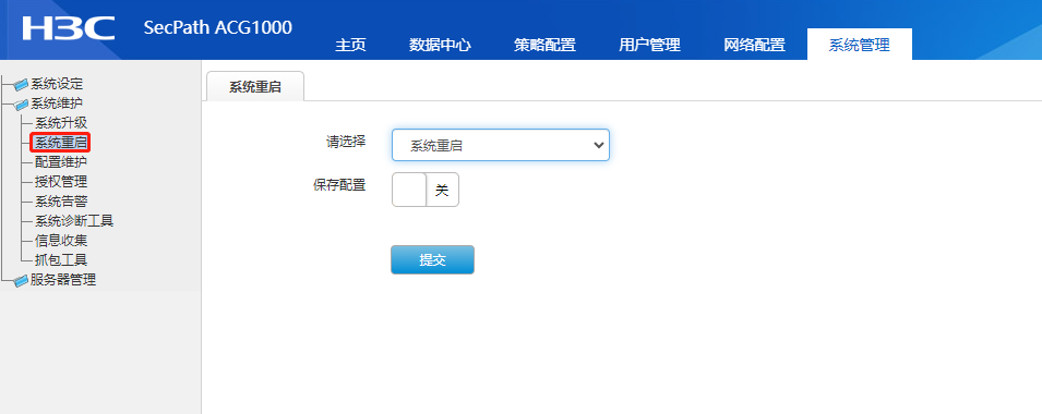 设置完成后,ACG1000设备将在指定时间定时重启。需要注意的是,定时重启会中断设备的正常运行,因此需要在设备的闲置时间进行操作,以避免影响业务运行。