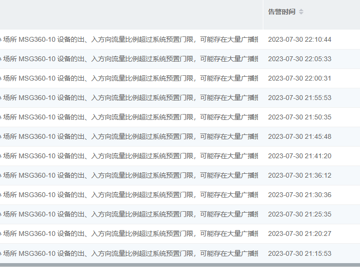 总提示:设备的出、入方向流量比例超过系统预置门限,可能存在大量广播报文复制