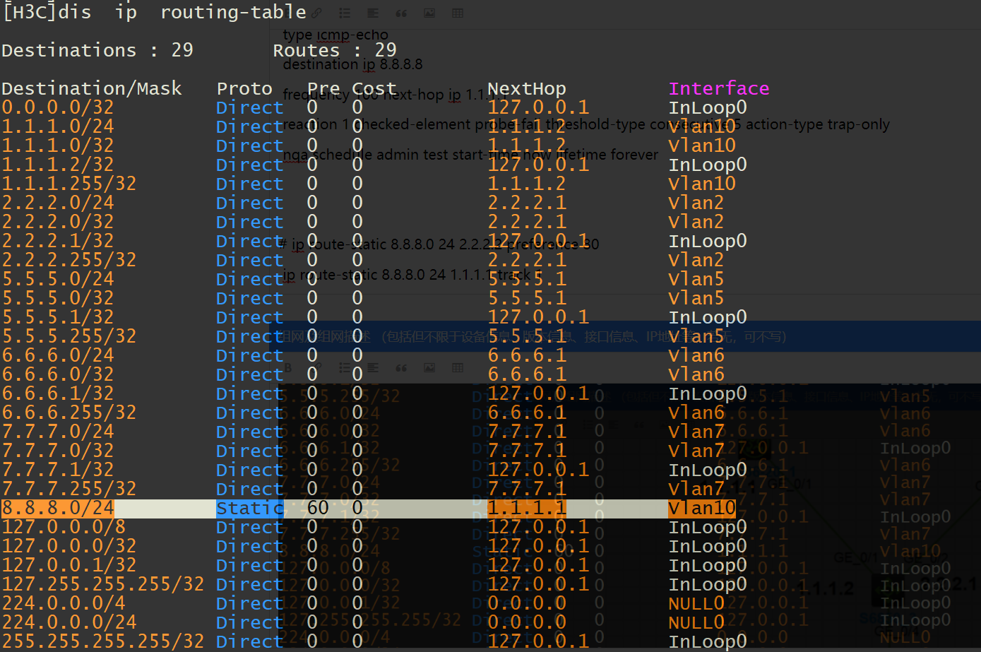 ip route-static 8.8.8.0 24 1.1.1.1 track 1