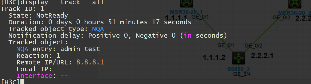 交换机配置NQA 、Track 、静态联动。当交换机3的0/1端口shutdown后,备路由不生效,主路由还存在。