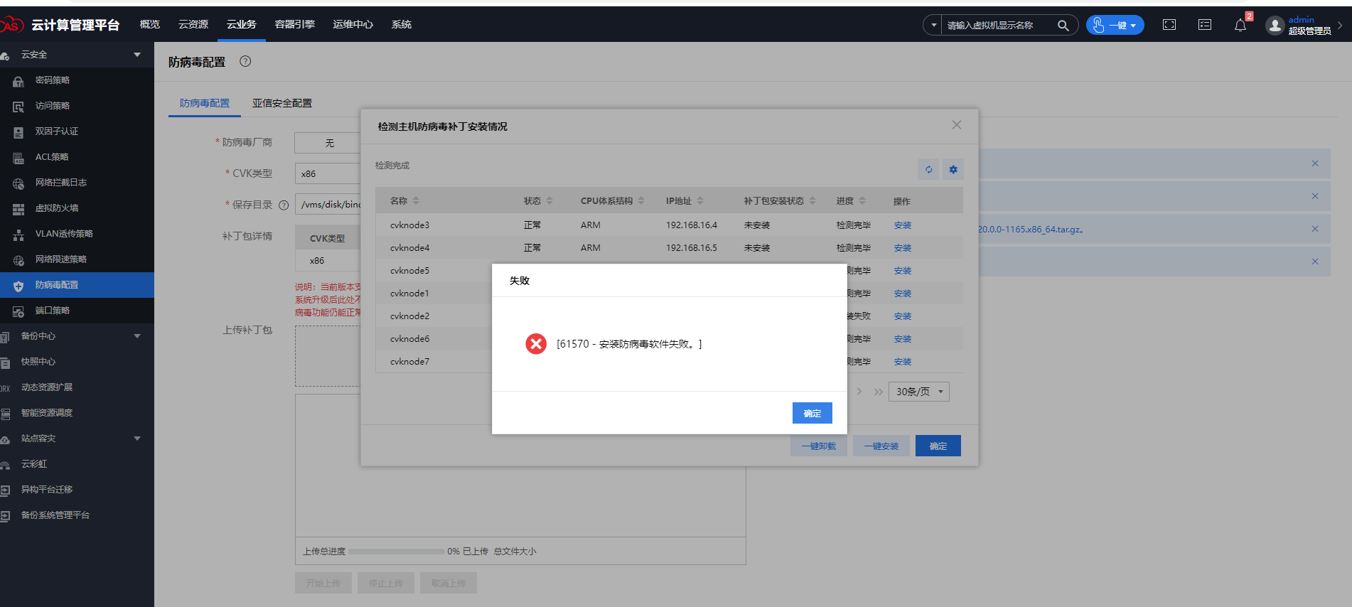cas防病毒安装失败,已经导入补丁包