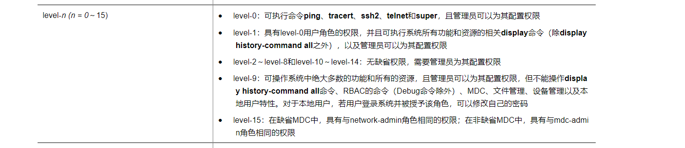 用户角色leve等级对应的权限是什么?