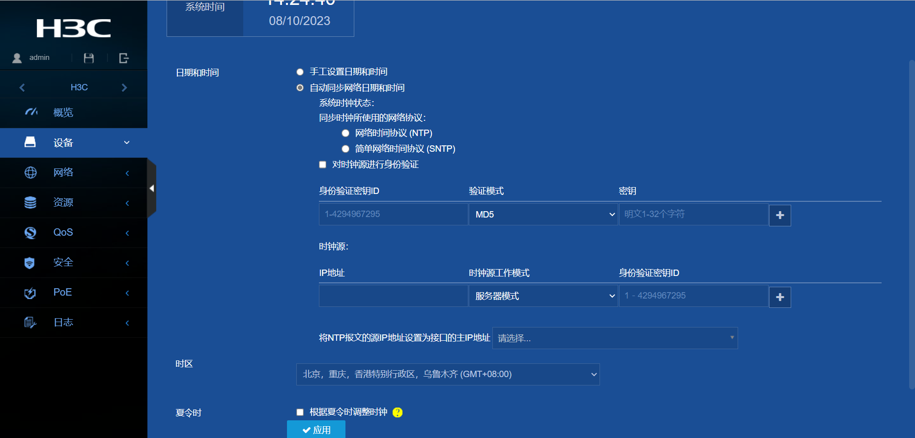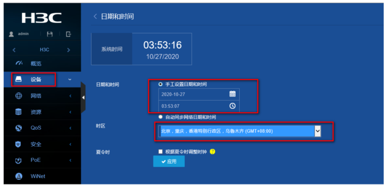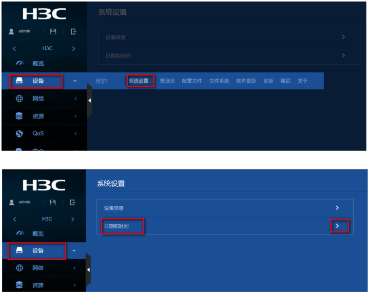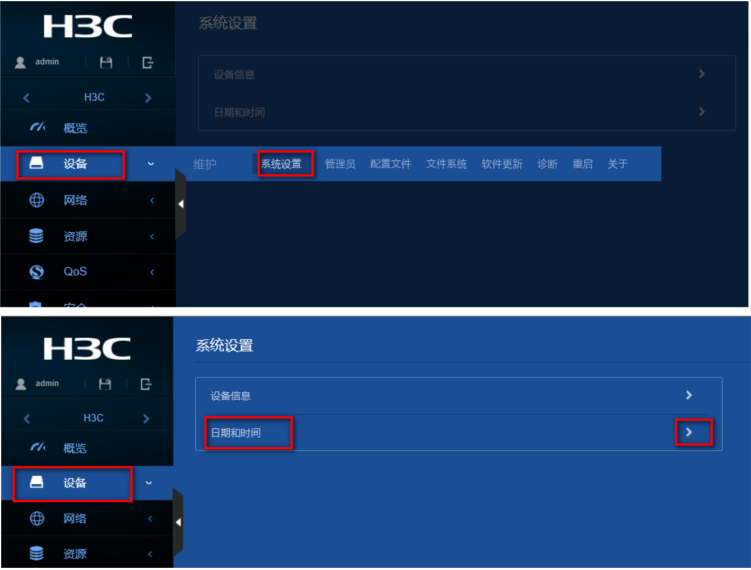 (2)在导航栏中选择“设备> 系统设置> 日期和时间”