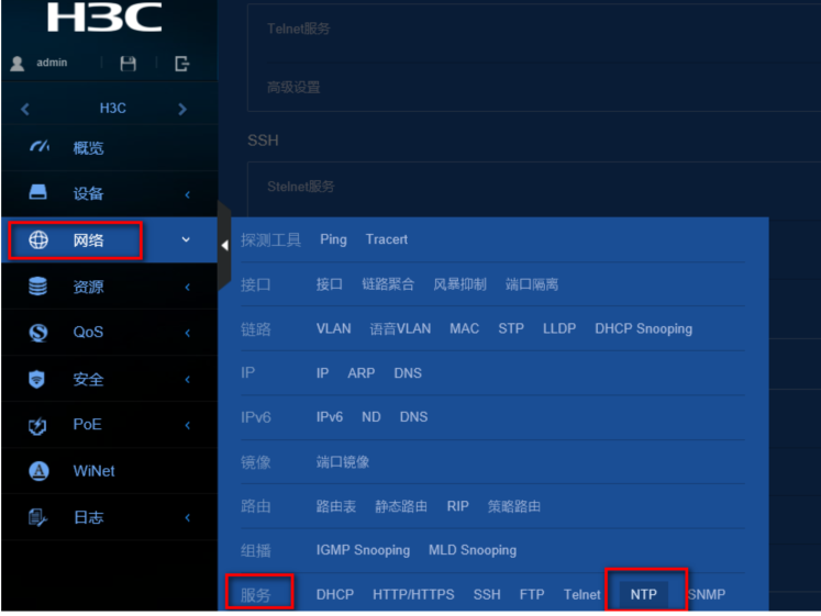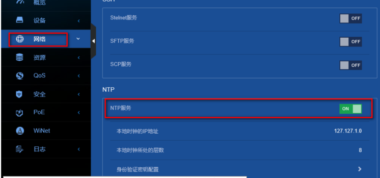 (3)在导航栏中选择“网络> 服务> NTP”