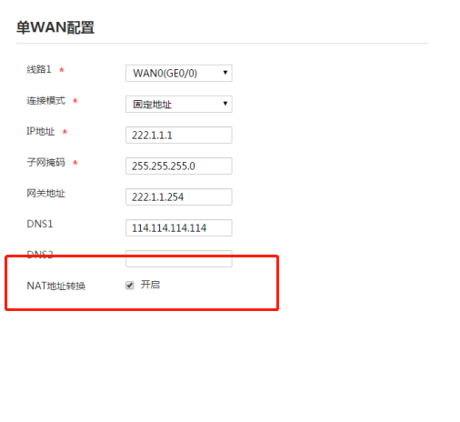 向导模式,WAN口配置为固定IP方式