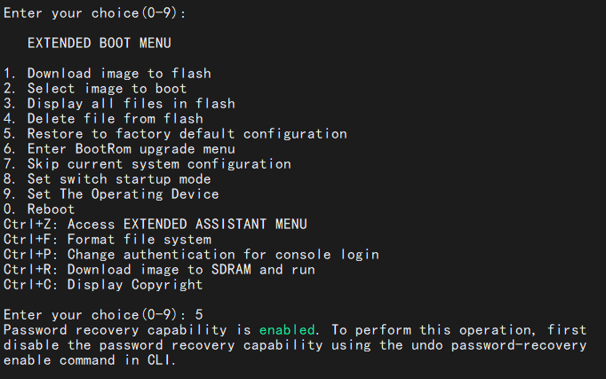 Enter your choice(0-9): 7 //由于设备密码恢复功能开启,此处选择7