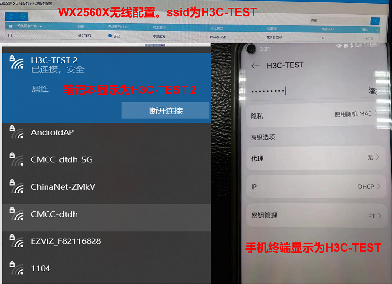 部署了一套华三无线WiFi,WX2560X控制器旁挂在核心SW上,拟使用云简网络业务模块中的PPSK认证功能做入网认证。开启PPSK和创建用户后,移动终端如手机输入密码显示无法链接,笔记本输入密码可链接,但链接的SSID账号自动多了一个“2”。