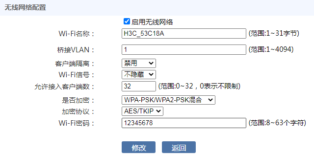 无线设置→无线参数设置