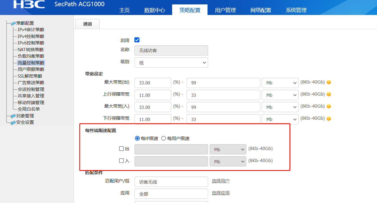 H3C ACG1000产品 ACGT1060如何给每个IP地址限速
