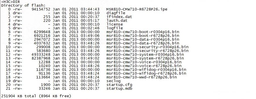 boot-loader file boot flash:/msr810-cmw710-boot-6728p26.bin system flash:/msr810-cmw710-system-r6728p26.bin main;