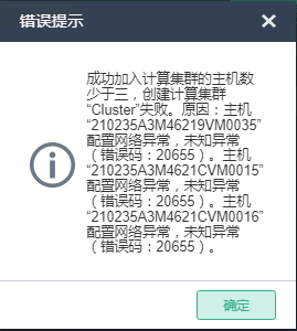 UIS E0750P09版本,在进行初始化部署增加主机失败,报错配置网络异常,IP可以ping通,配置步骤显示先是完成,然后失败。