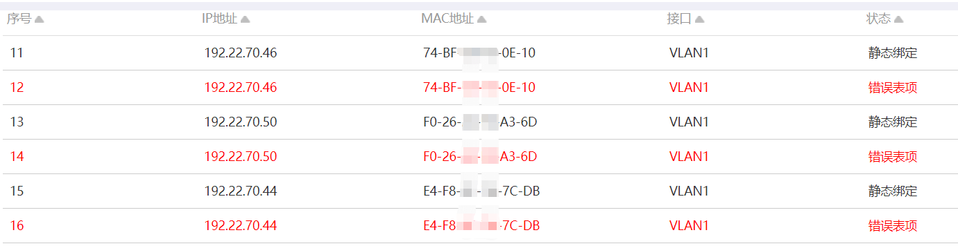 ER3200G3 ARP显示错误表项   ARP静态绑定的和没绑定的都有这样的显示   局域网内部分电脑获取IP后不能联网 但和ARP列表中的IP和MAC没有对应关系欧五表项