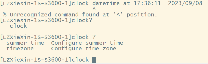 交换是比较早期的S3600 V2,由于没有NTP SERVER,交换机时间不准,需要手动修改,但是使用命令不正确,如下图,请问用什么命令?
