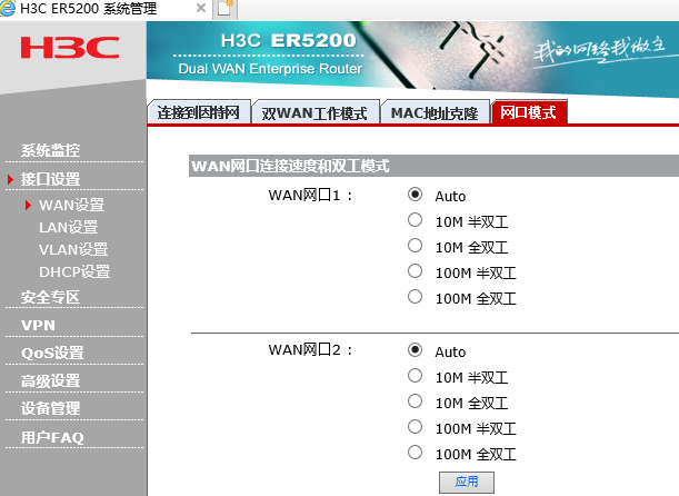 H3C ER5200的wan口模式只有100M吗?