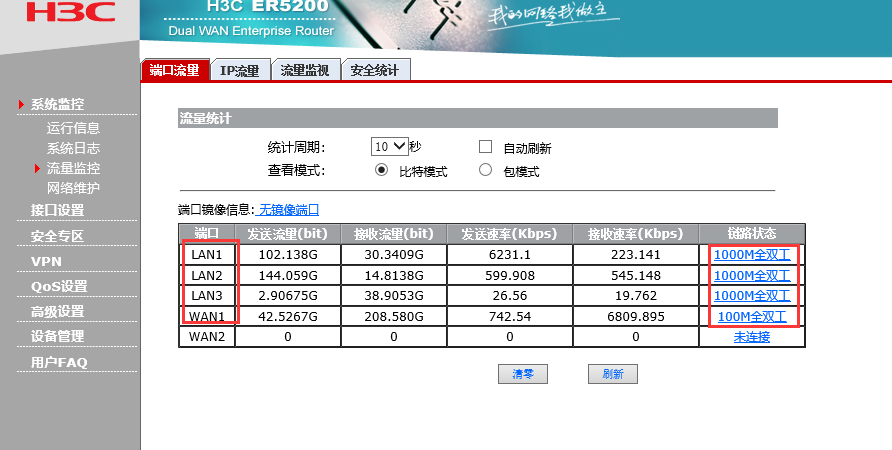 H3C ER5200的wan口模式只有100M吗? 但是看LAN口又有千兆..