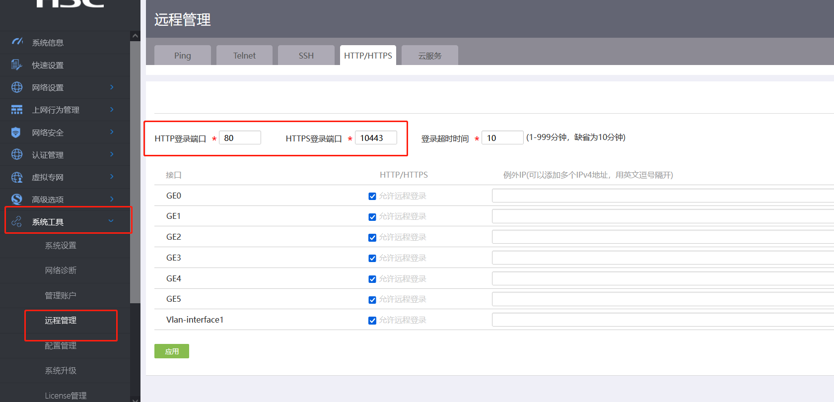 MSR_830 路由器,公网IP, 下面带了几台服务器, 我想通过80端口访问 服务器上的B/S程序,因此我做了端口映射NAT,其中外网为80,内网为80.绑定域名后,输入地址,总是定向到路由器管理界面。我想这个产品的设计是否,指定了公网IP,那么通过公网IP首先进入的就是设备WEB管理后台。测试果然是这样,这个设备能否给管理后台加端口,比如 Ip:8080,这样就跟80不冲突了。 或者其他方式,麻烦技术给予解答,谢谢,对设备操作不是很熟悉,能否有图片或操作视频等,不胜感激!