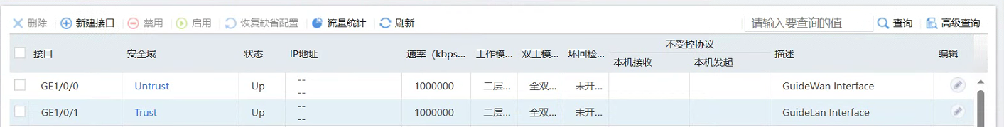 2、检查防火墙上的互联端口是否已加入安全域并放通安全策略或域间策略。
