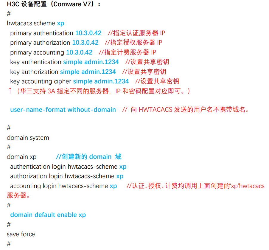 1、如果是做tacacs相关的AAA认证,对接Cisco的ACS平台,则,参考下面配置: