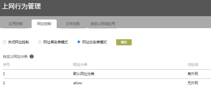 当管理员仅允许用户访问指定网址或禁止用户访问指定网址时,可通过配置网址控制功能实现。