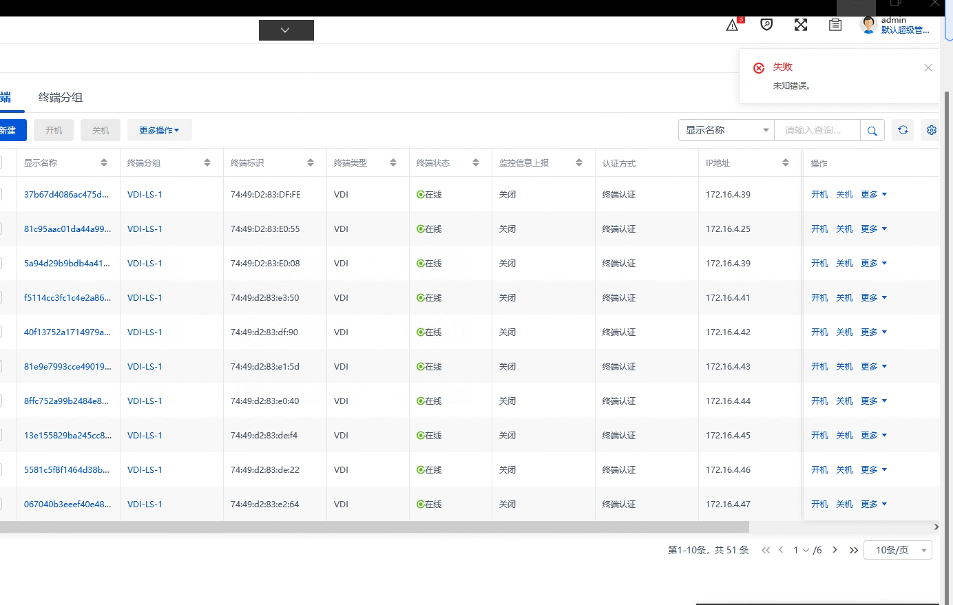 云桌面部署,教师机控制关机学生机显示失败
