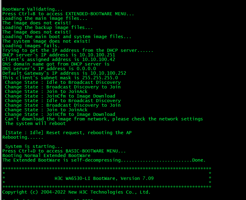 现在设备提示Can't download the image from network, please check the network settings,但是检查网络配置没有问题,现在AP一直重启