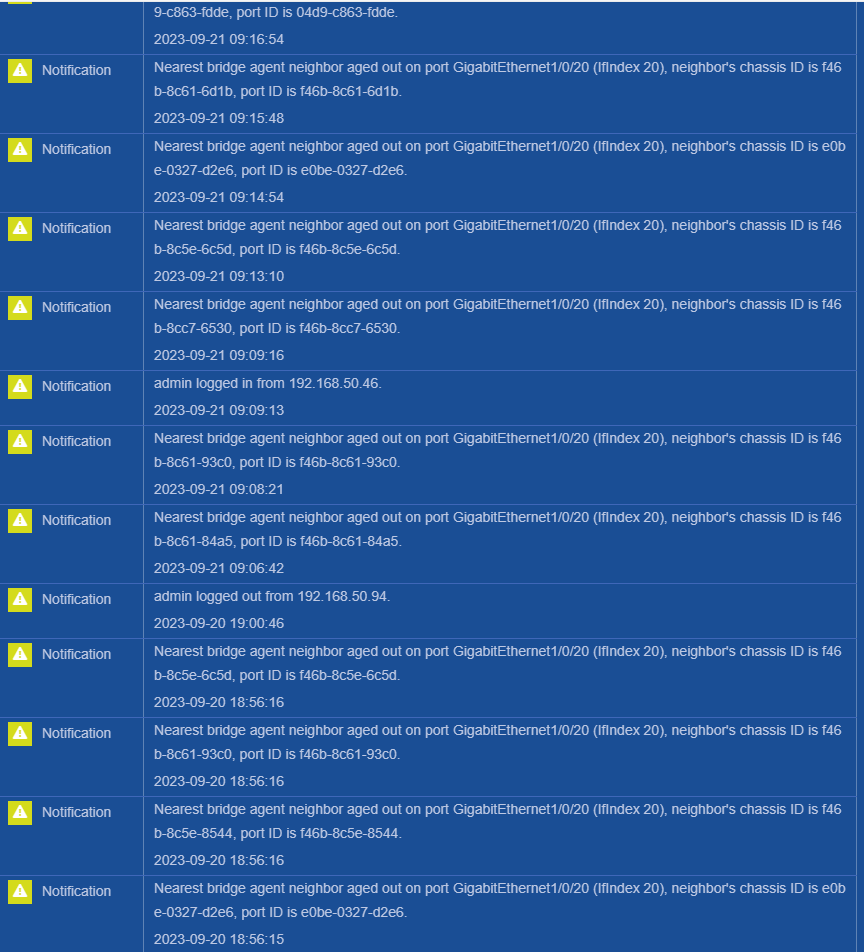 这些日志看到了端口UP DOWN的记录和LLDP邻居学习的情况。
