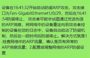 %Jan 24 16:41:32:946 2011 D08-4F-4-20U DRVPLAT/4/PORT_ATTACK_OCCUR: Auto port-defend started.SourceAttackInterface=Ten-GigabitEthernet1/0/29, AttackProtocol= ARP