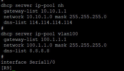 如图,模拟器dhcp relay实验,R9为DHCP server。