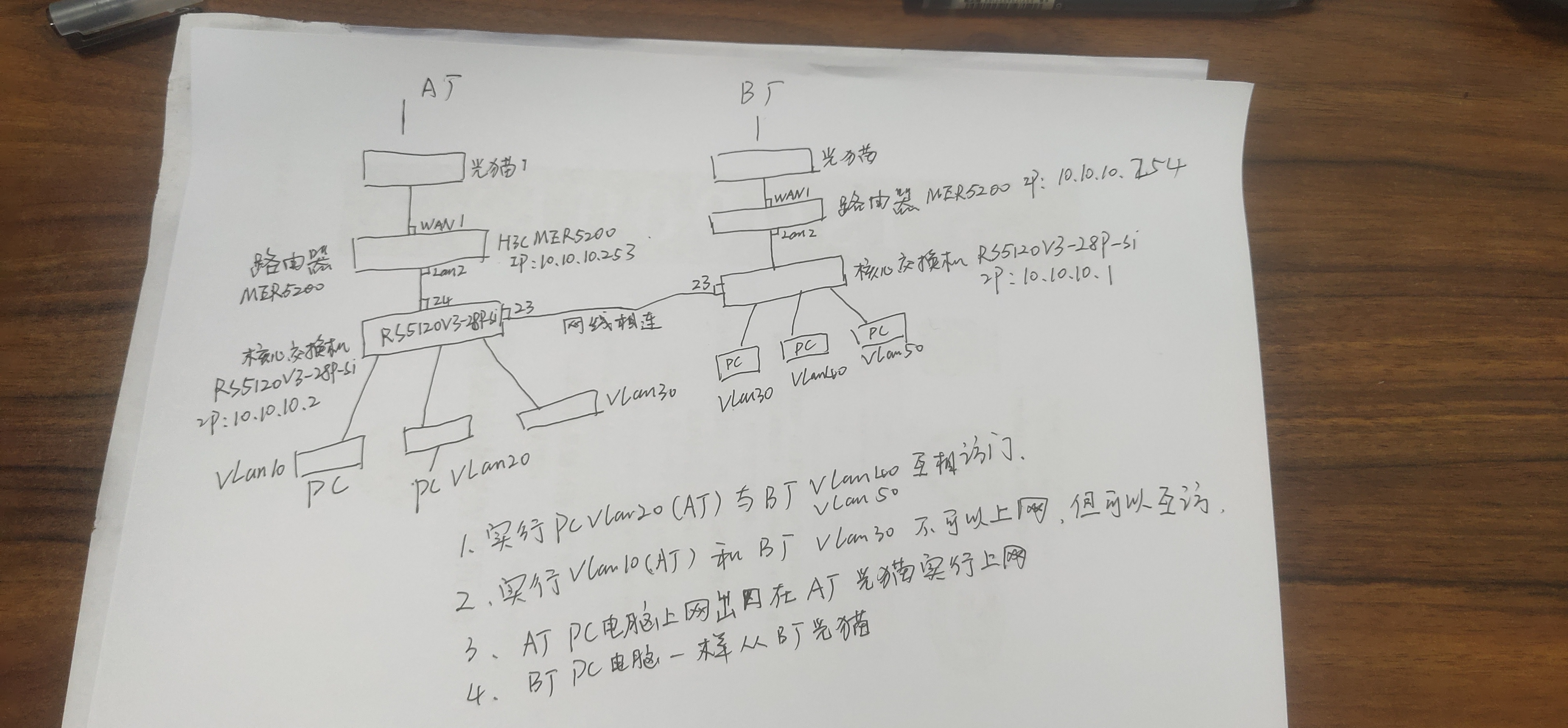 3、A厂和B厂,各分厂终端,上网,走各自分厂的路由器出口上网线路。