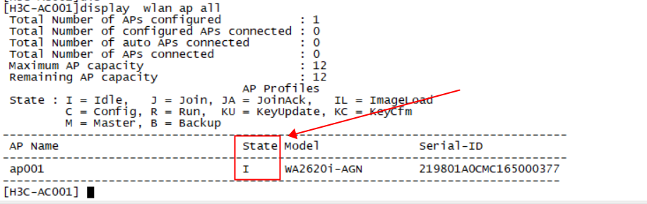 wlan ap ap001 model WA2620i-AGN id 1