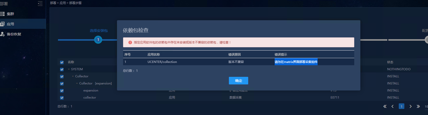 从反馈的截图来看,可以尝试登陆http:x.x.x.x:30000/central界面部署看下。