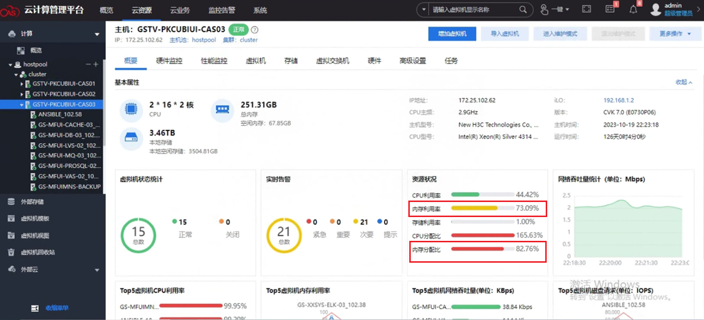 请教一下各位大佬,为什么cas上有一台节点的内存分配率是最小的,实际占用却是最大的?占用率都比分配率大了,别的节点都是占用率比分配率小,而且已影响业务,往别的节点迁移了个虚拟机才恢复。就图中cas02节点,且这个节点的swap分区和cache都占用很大。