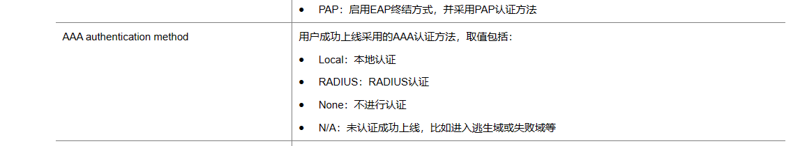 display dot1x connection,里面有个AAA authentication method是用户成功上线采用的AAA认证方法。