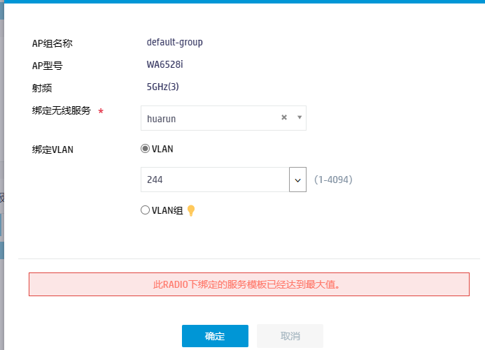 无线AP6528i的第三个射频不能绑定无线模板,提示如下: