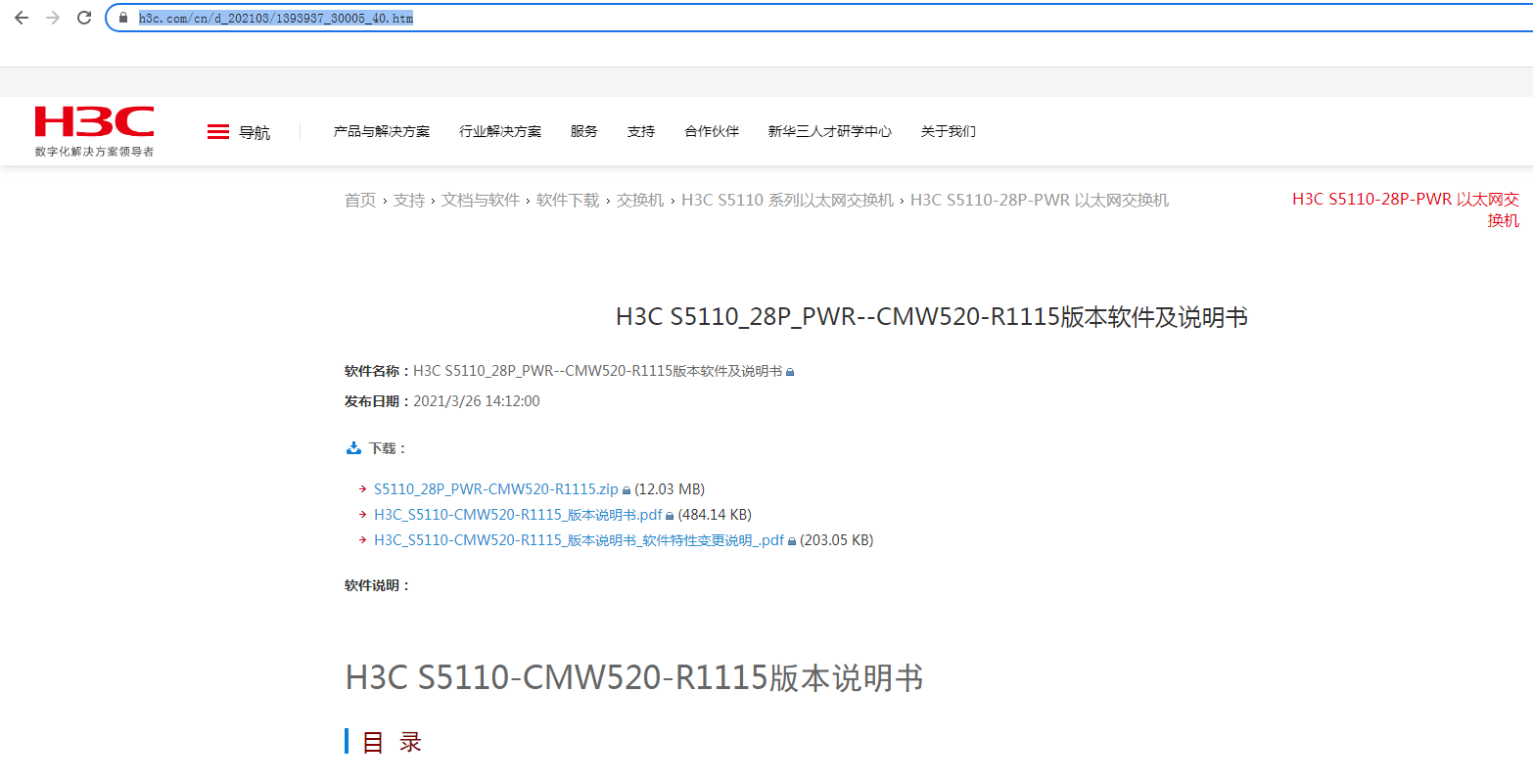 H3C S5110_28P_PWR--CMW520-R1115版本软件及说明书