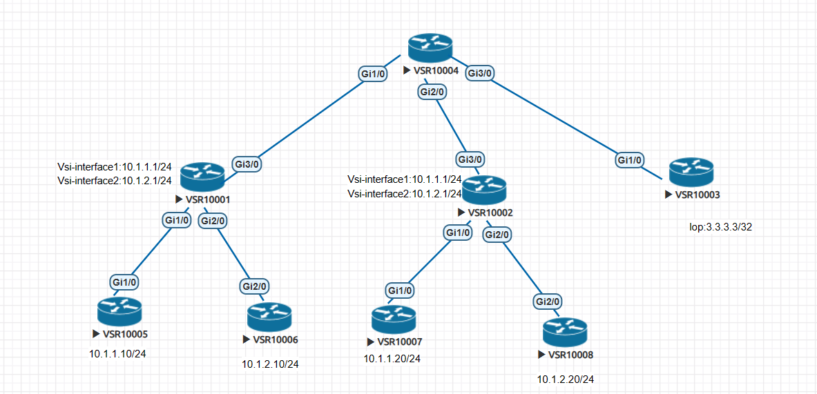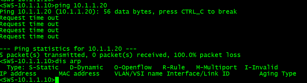 VSR10005=10.1.1.10/24  MAC对应0005-0005-0005