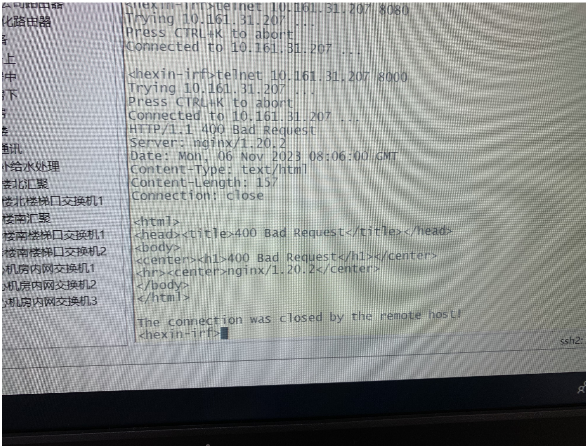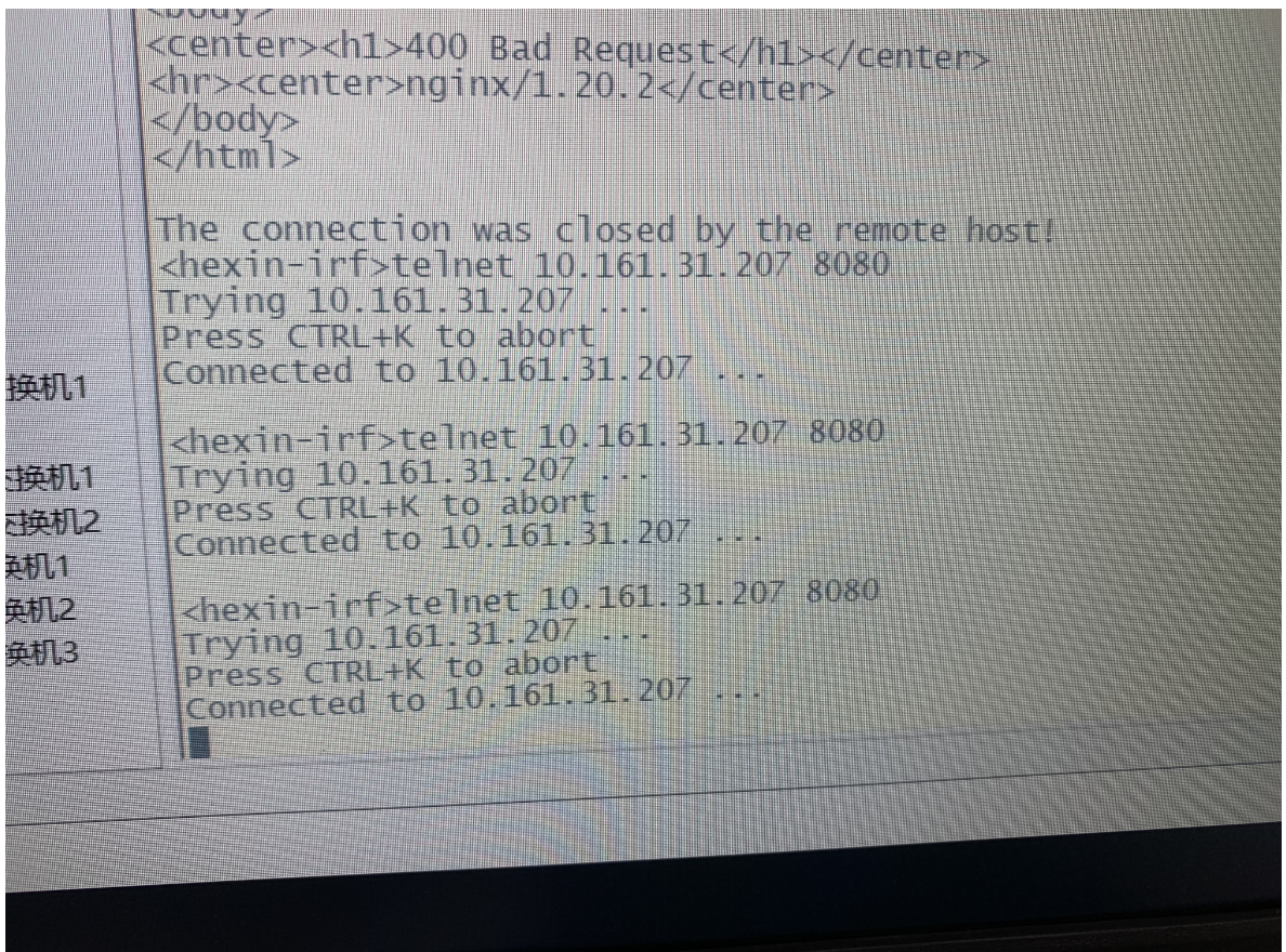 下面从核心交换机测试到服务器端口号的测试,这两个端口号8080和8000有通的吗?