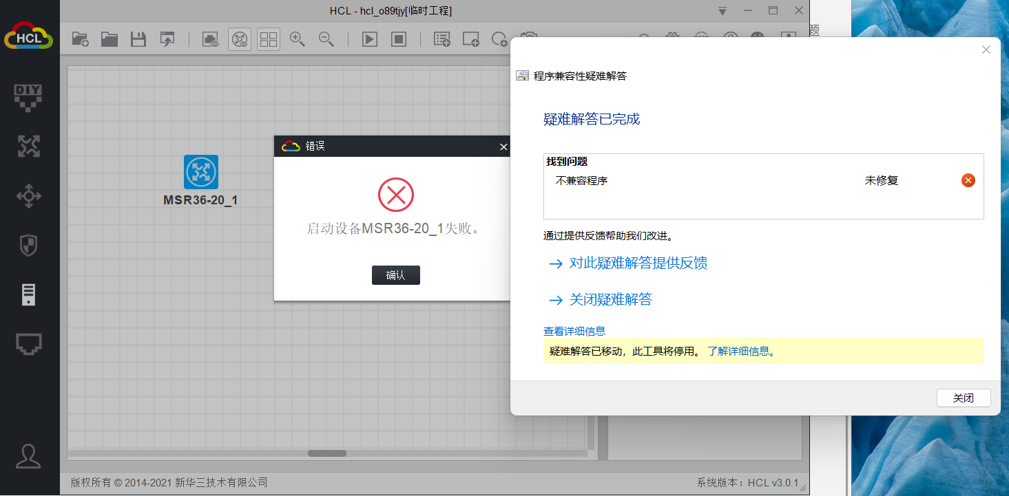 下载HCL_Setup_V3.0.1也试了其他版本的都启动设备失败,程序不兼容