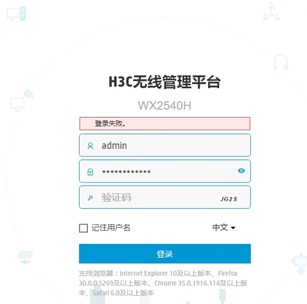 华三AC WX2540H 登录提示登录失败,配置ssh也提示失败