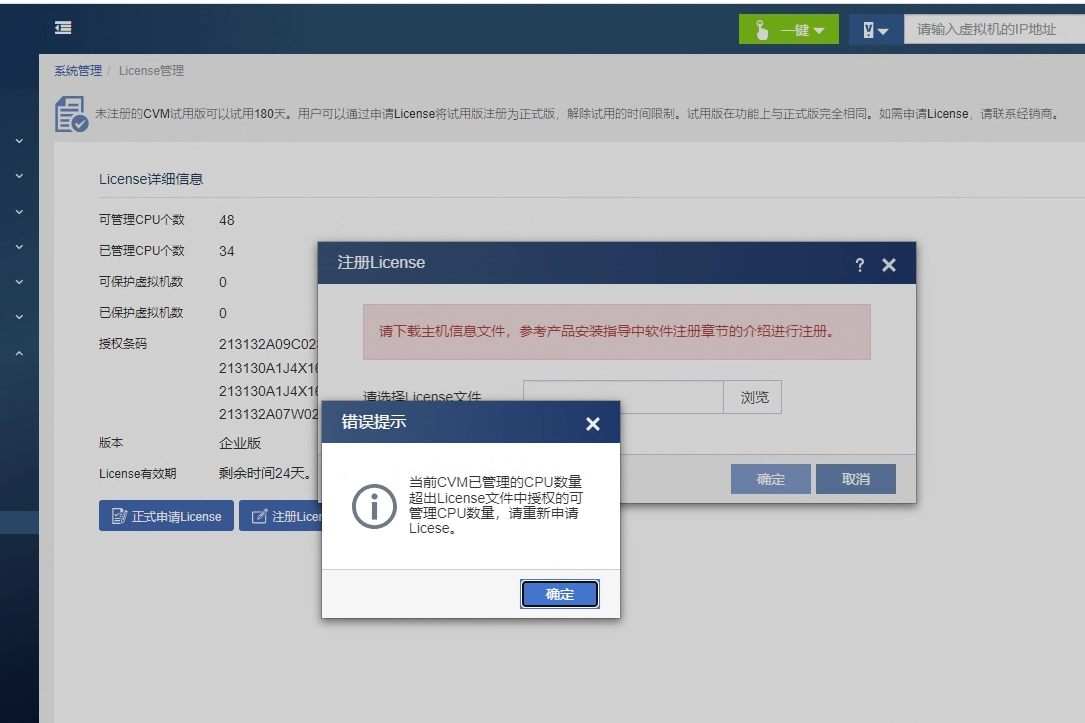 现在临时授权承载了6颗非CPU的,我现在只导入了两颗CPU的授权。 意思是,我需要满足6颗CPU正式授权的管理么? 并且我导入正式授权,会直接将我的临时授权进行覆盖,就无法继续使用临时授权了?