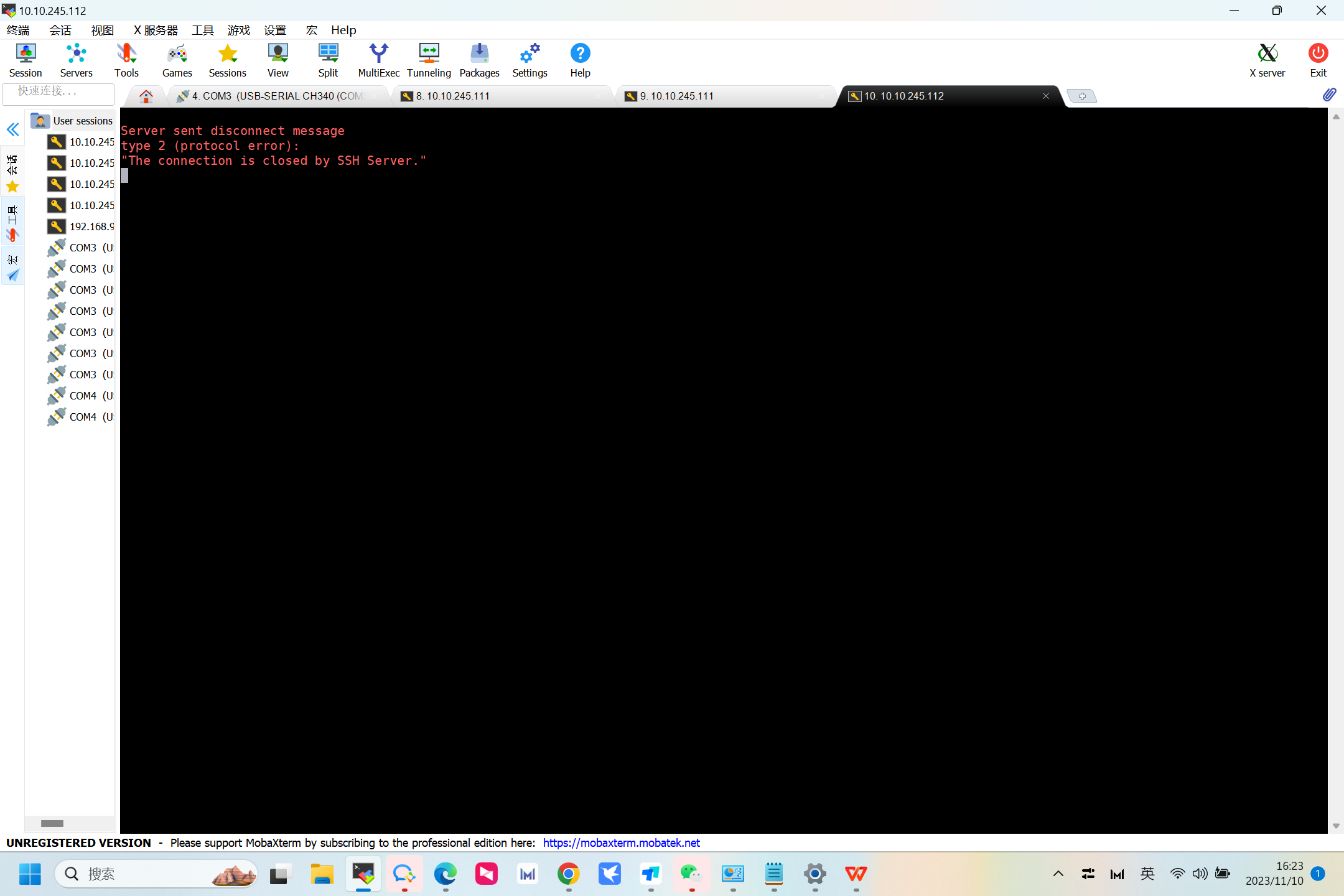 交换机22端口测试通的,但是ssh连接提示Server sent disconnect message type 2 (protocol error): "The connection is closed by SSH Server."