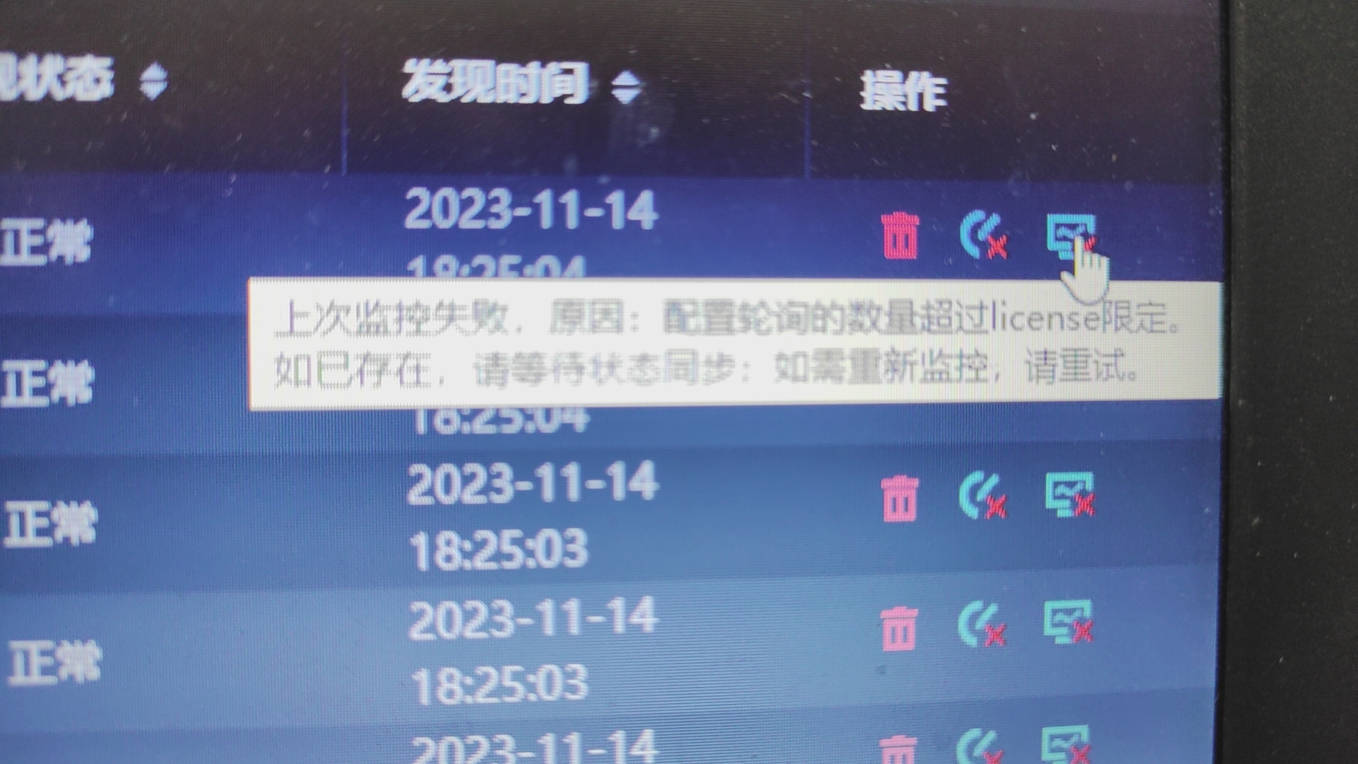 添加设备的时候,只要勾选轮巡就报错,不轮巡就正常