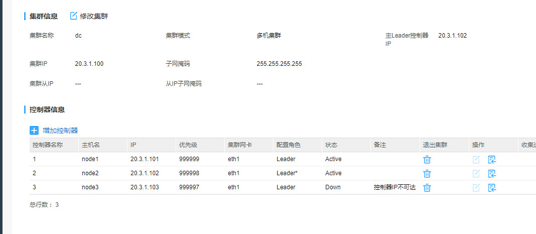 ADDC 版本E3203H11,显示“控制器IP不可达”,但是节点3服务器到其它节点和网关都是可以ping通的