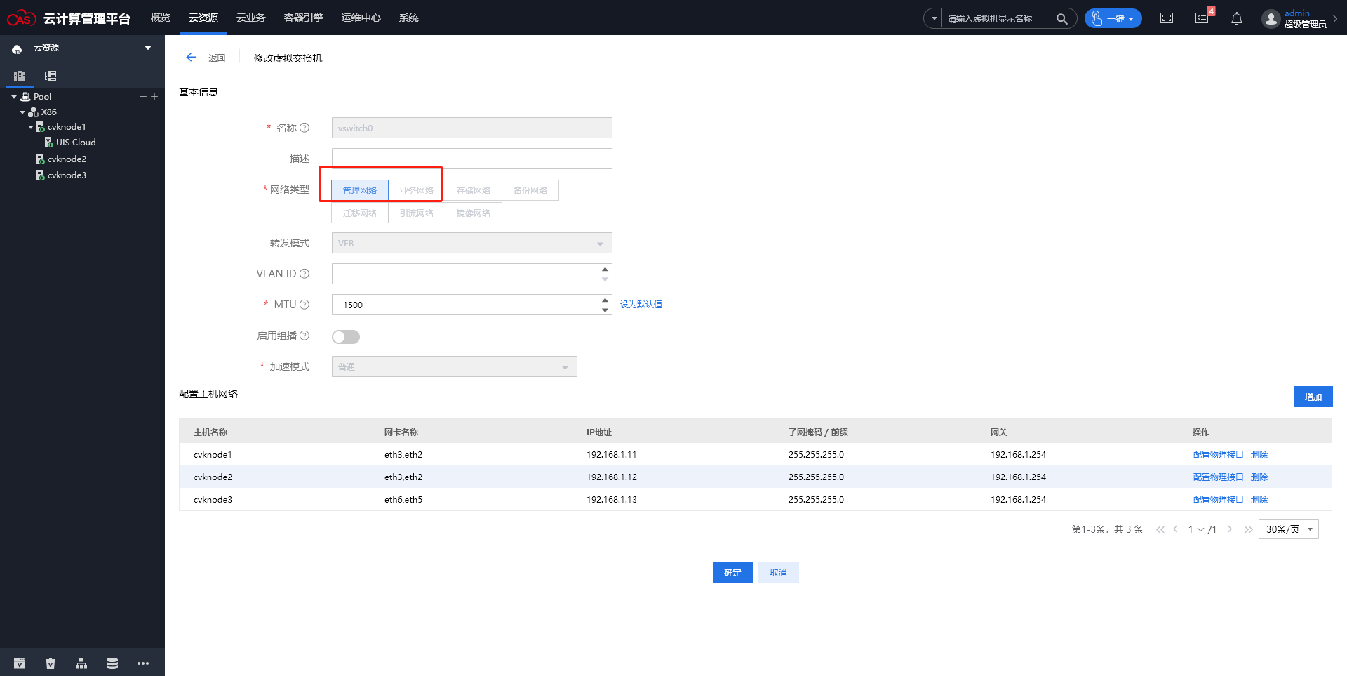 CAS V7.0 (E0781P02) 虚拟交换机管理网不能修改添加业务网络? 我记得是可以操作的呀?