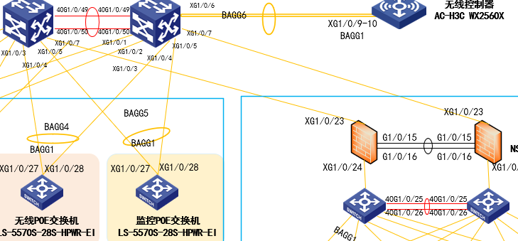 防火墙上联核心交换机,下联汇聚交换机,做二层主备部署,需要透传vlan 10 vlan 20 vlan 30等业务vlan,它的上下行接口配置为trunk,还是access类型?我看hcl市场的跟配置案例用的不一样,有相对应的配置案例吗