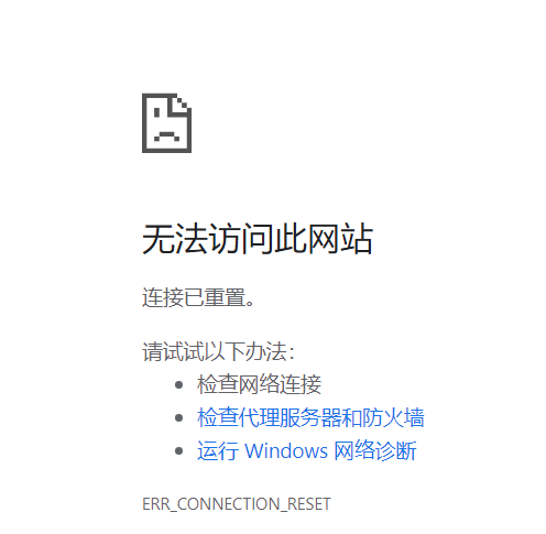 结果:通过家庭网络访问公司的内网服务器映射端口,显示连接已重置。贴图
