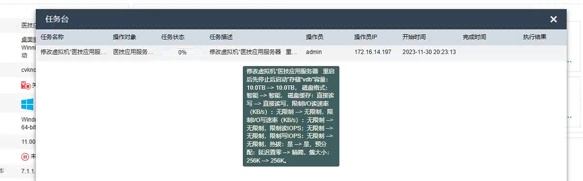 虚拟机磁盘分配,将延迟置零更改为精简模式,进度一直卡在0%3个小时了,这是为什么,可以开机吗?或者取消掉
